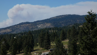 The Keremeos Creek Wildfire was discovered on July 29 and has reached almost 2800 hectares, much of it in steep and inaccessible terrain. We immediately saw signs of it because of a huge plume of smoke created by the fire.